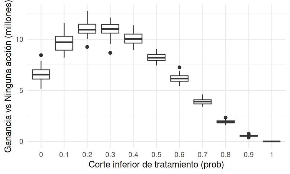 geom_boxplot() + ylab("Ganancia vs Ninguna acción (millones)") +