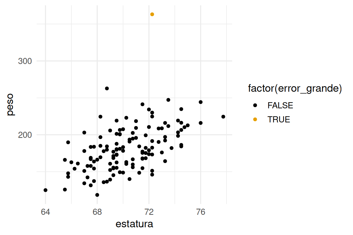 Y observamos un datos que es probablemente un error de captura, o quizá una forma de cuerpo para la que no necesariamente quisiéramos hacer predicciones con nuestro modelo. Incluímos este filtro en nuestra receta: