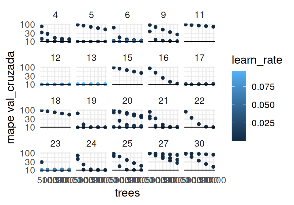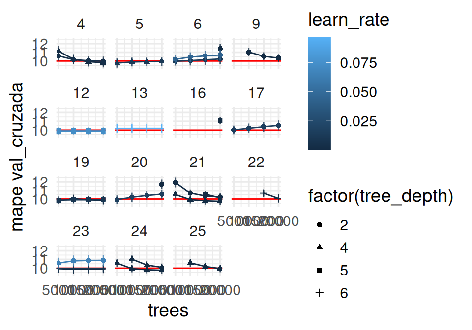 geom_linerange(alpha = 0.8) + ylab("mape val_cruzada") `geom_line()`: Each group consists of only one observation.