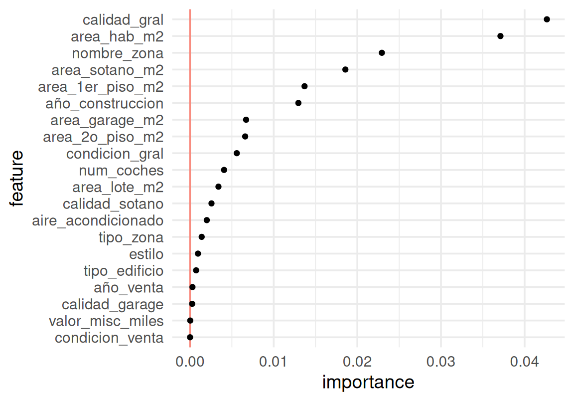 g_2 <- graficar_imp(imp_2) + labs(subtitles = "Con interacciones")Observacion: La interpretación de importancia es siempre condicional al total de variables en el modelo. La inclusión o exclusión (o existencia o no de variables disponibles) de variables puede producir importancias muy distintas